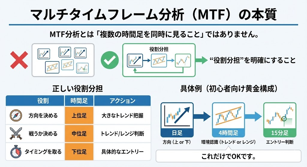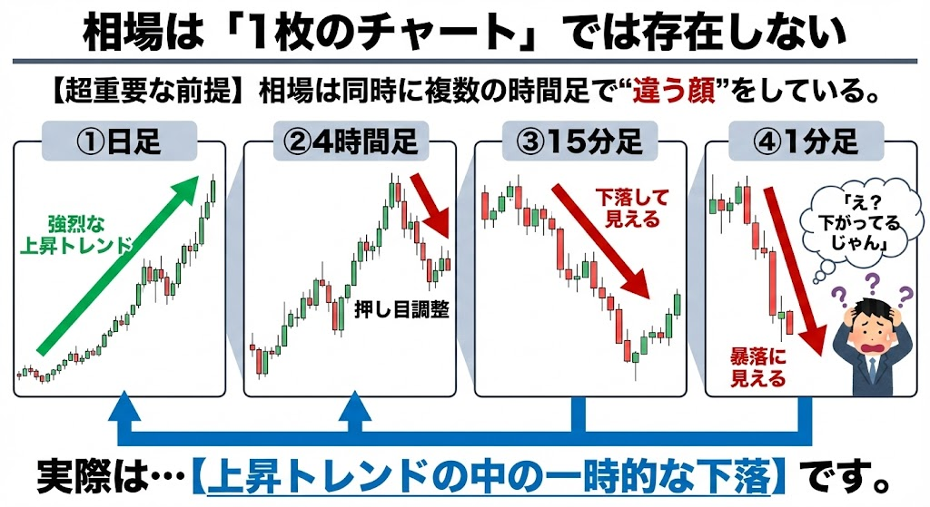 「複数の時間足を同時に見ること」ではありません。