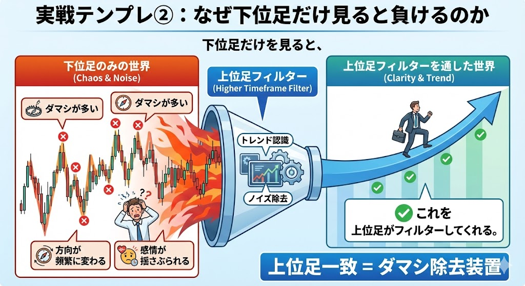 実戦テンプレ②:なぜ下位足だけ見ると負けるのか