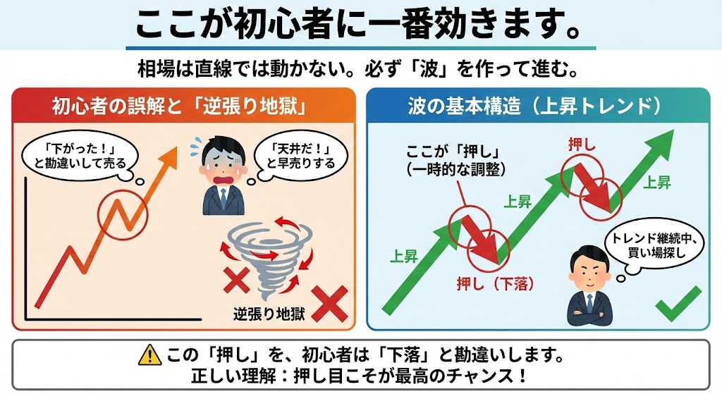 上昇 → 押し(下落) → 上昇 → 押し → 上昇