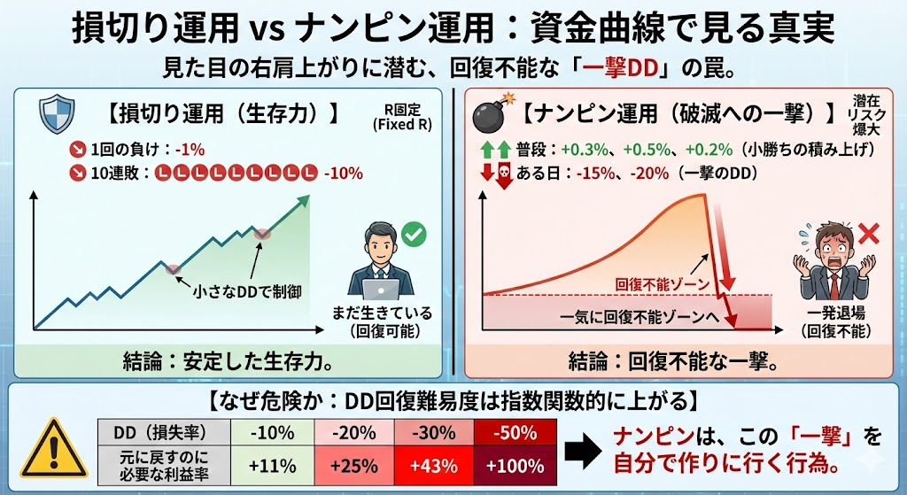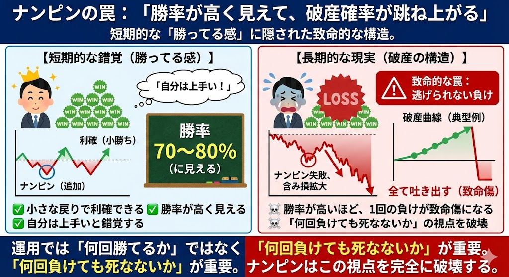 「勝率が高く見えて、破産確率が跳ね上がる」